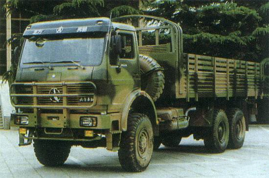 北奔7噸級(jí)4×4車(chē)型1926A軍用越野車(chē)和北奔10噸級(jí)6×6型2629A軍用越野車(chē)。
