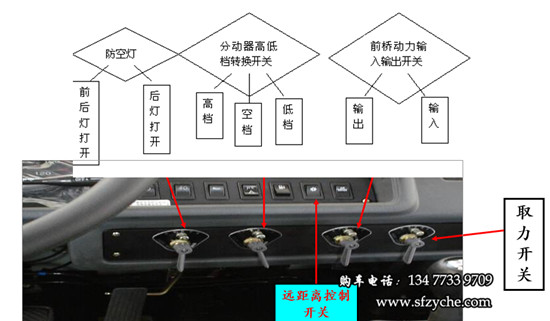 2、收鋼絲繩:拉上駐車制動受控閥,并用木塊,石頭掩住車輪,將鼓筒離合器操縱機(jī)構(gòu)手柄放在“合”的位置,變速器處于空檔 ,起動發(fā)動機(jī),踏下離合器踏板,接通遠(yuǎn)距離控制開關(guān)(此時蜂鳴器叫),按下取力器自鎖開關(guān),同時轉(zhuǎn)動手柄至“反”的位置,此時駕駛室頂蓋儀表指示燈亮“箭頭逆時針旋轉(zhuǎn)”圖案,表明取力器已掛上,此時慢慢松開離合器,平穩(wěn)加油,即可收卷鋼絲繩,開始牽引。牽引完后,踩下離合器踏板,按下取力器自鎖開關(guān),同時轉(zhuǎn)動手柄至“0”的位置,將鼓筒離合器操縱手柄放在“離”的位置,關(guān)閉遠(yuǎn)距離控制開關(guān)。