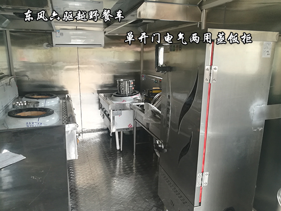 東風六驅(qū)越野餐車車輛概述:采用東風國五越野底盤改裝, 車廂材質(zhì)采用外冷軋鋼板,內(nèi)飾不銹鋼,中間保溫層,隱藏式上車踏步,頂部安全窗,兩個副食灶,一個蒸飯車,抽油煙機,平冷柜,水路,電路,油路等。