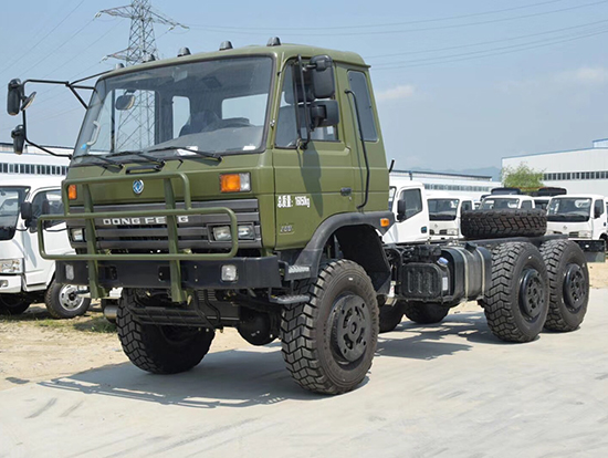 東風(fēng)六驅(qū)越野DFS5160TSML2型沙漠車_東風(fēng)老款153型六驅(qū)越野沙漠車越野性能:東風(fēng)康明斯6缸BT系列210馬力柴油增壓發(fā)動機(jī) 12.5R20鋼絲子午線越野花紋加寬型輪胎 軍工機(jī)械式六檔變速箱 新型發(fā)動機(jī)、全油路、進(jìn)氣道自動電加熱系統(tǒng),可在-41℃環(huán)境下在駕駛室內(nèi)一鍵啟動 250mm雙層車架,承載能力加倍提升 350L超大油箱,滿足1300公里無需加油 三座單臥、環(huán)形儀表臺新款駕駛室 后置絞盤,牽引力44100N(選裝)?稍诖嗽揭暗妆P基礎(chǔ)上改裝成越野廂式車,越野油罐車、越野灑水車、越野消防車、越野隨車吊、越野吸污車、越野平板車、越野運(yùn)兵車等專用越野車型。
