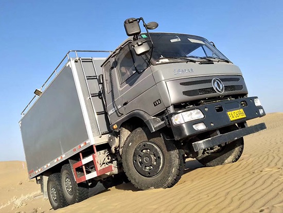 東風(fēng)六驅(qū)國(guó)五越野廂式車簡(jiǎn)介:采用東風(fēng)原廠六驅(qū)國(guó)五越野底盤(pán)EQ2220GD5DJ型,駕駛室為老款153,新款D913兩種可以選擇,康機(jī)190馬力帶增壓,機(jī)械式六檔變速箱,3.5噸軍檢分動(dòng)箱,4.5噸雙聯(lián)式軍用驅(qū)動(dòng)前橋,5噸軍用貫通式雙后橋,方向助力,離合助力,前橋介入高低檔均采用電控式,315/80R22.5越野輪胎,軸距3500+1250mm,ABS,隨車工具及備胎各一套。