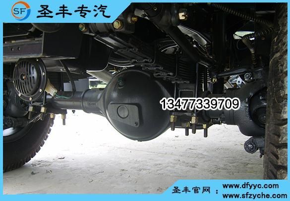 采用康明斯B170-33柴油發(fā)動機,五檔變速箱,軸距3950mm,單片干式φ325mm離合器,2.7T驅動前橋, 7.8T驅動后橋,232×75×6.5 mm車架,9.00-20尼龍?zhí),尖頭單排駕駛室,斷氣剎,動力轉向,選裝4米車箱。
