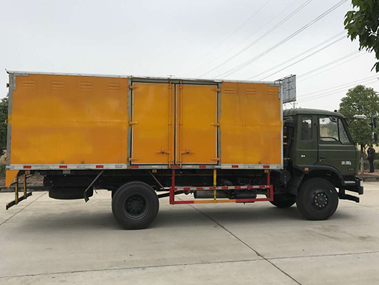 東風(fēng)國五四驅(qū)越野廂式車廂體材質(zhì):廂體為雙層金屬骨架結(jié)構(gòu),外部為冷扎鋼板,內(nèi)壁采用鋁合金板蒙面,夾層為隔熱阻燃材料填充,鋁花紋底板,側(cè)對開門,后雙開門,廂體尺寸6050×2360×2100(mm)